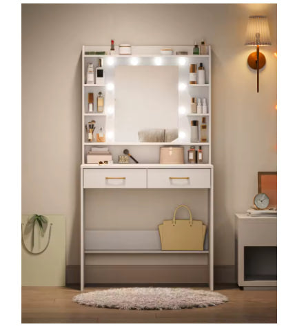 Elegancka toaletka z wbudowanym lustrem i oświetleniem LED, idealna do Twojej sypialni lub salonu.